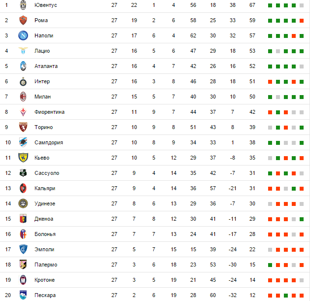 Не сыграют: Кьеллини, Стураро, Куадрадо — Монтоливо, Бонавентура, Абате.