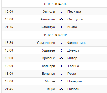 Football.ua представляет вашему вниманию анонс матчей тридцать первого тура чемпионата Италии.