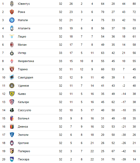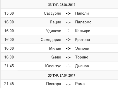 Во всех парах 33-го тура чемпионата Италии, которые волею календаря состоятся в воскресенье, будут встречаться либо фавориты сезона с аутсайдерами, либо команды, которым уже ничего не нужно. Однако это вовсе не значит, что болельщиков не ждет ничего интересного. Последние туры приучили всех, что даже карлики способны на сюрпризы. Красноречивым подтверждением этого стал 32-й тур, в котором команды из нижней половины турнирной таблицы сумели одержать больше побед, чем из Топ-10 — 3 против 2.
