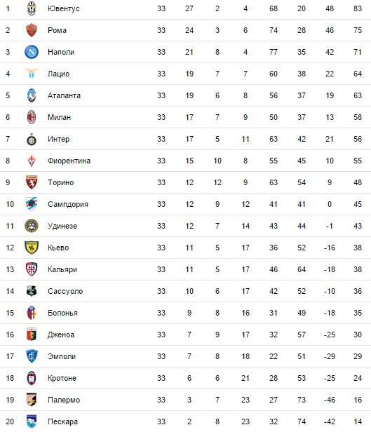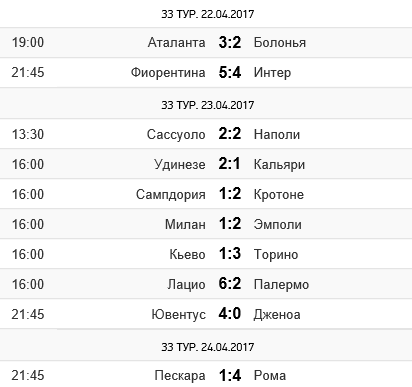 Football.ua подводит итоги тридцать третьего тура чемпионата Италии.