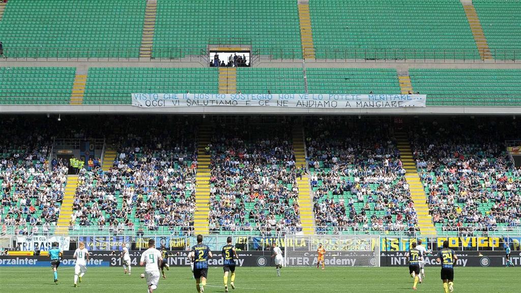 Ультрас просто встали со своих мест и ушли с трибун Сан Сиро, оставив после себя баннер: "Вы не заслуживаете нашей поддержки. Мы пришли поздороваться, а теперь пойдем пообедаем".