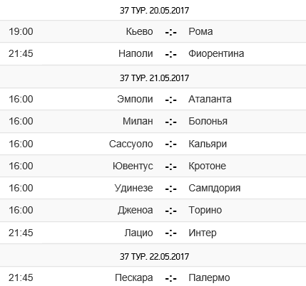 Чтобы сохранить хоть призрачный шанс на скудетто и обезопасить себя от претензий Наполи на второе место, Рома обязательно должна обыграть Кьево. Наполи же, если действительно хочет получить прямой пропуск в групповой раунд Лиги чемпионов, должен одолеть Фиорентину, для которой поражение в Неаполе может закрыть дорогу в Лигу Европы.