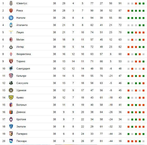 Football.ua подводит итоги тридцать восьмого, заключительного тура чемпионата Италии.
