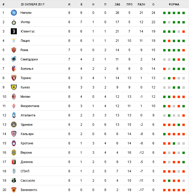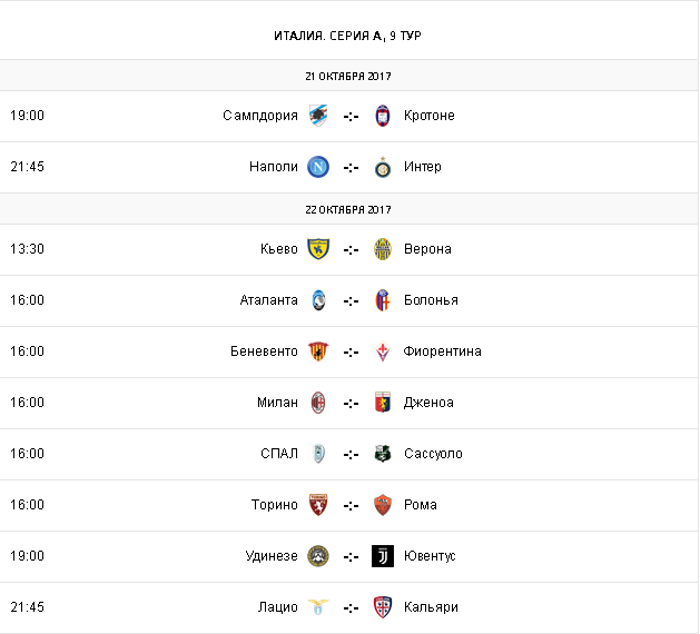 Воскресенье, 22 октября, 16:00. Беневенто, Стадио Чиро Вигорито. Арбитр – Клаудио Джавилуччи