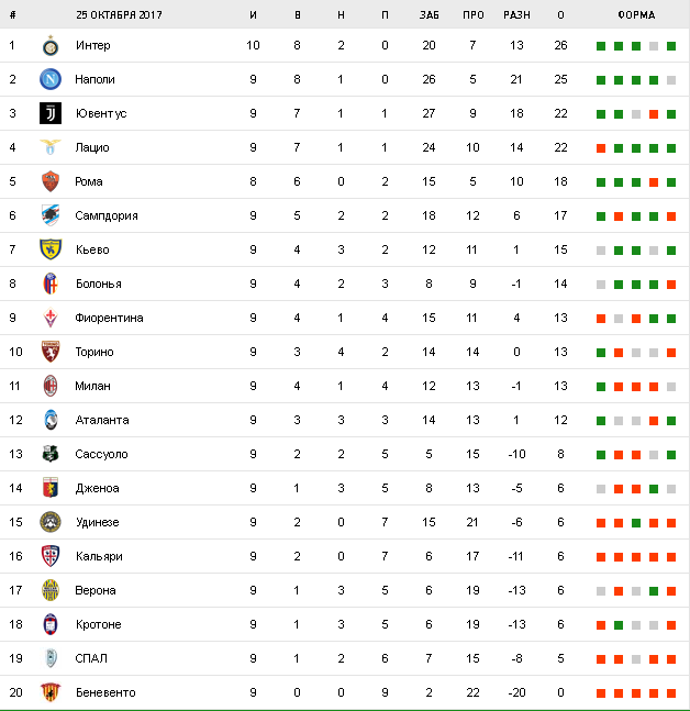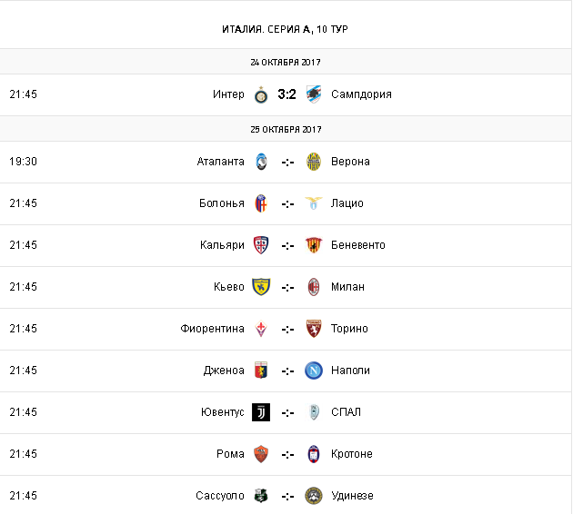 В вынесенном на вторник матче Интер — Сампдория, который по праву можно считать центральным в десятом туре чемпионата Италии, "нерадзурри" одержали непростую победу и поднялись на первую строчку в турнирной таблице. Впрочем, если не произойдет чуда, "змеи" продержатся на вершине всего лишь сутки. Ведь, как и в прошлом туре, в отличие от центрального поединка, в остальных матчах соискателям скудетто, в том числе и Наполи, отстающему теперь от Интера на одно очко, будут противостоять команды, уступающие им по всем параметрам.