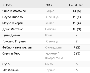 Турнирная таблица