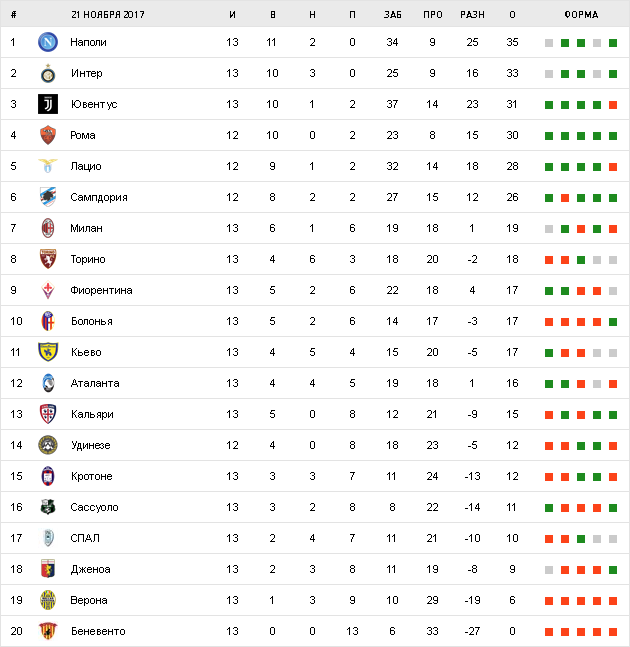 Football.ua подводит итоги тринадцатого тура чемпионата Италии.