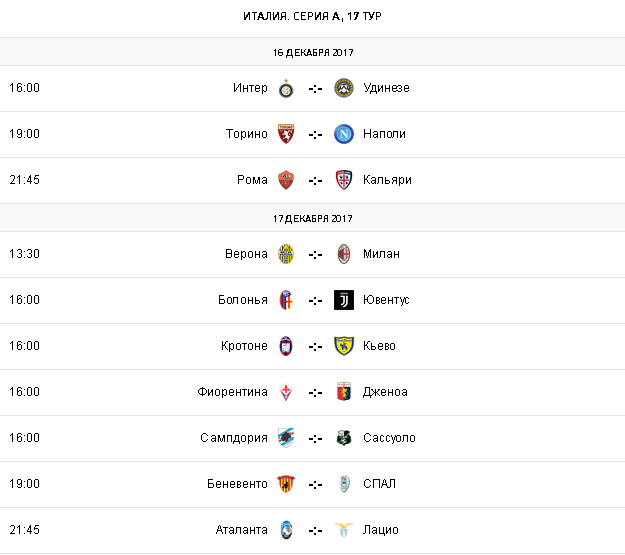 Воскресенье, 17 декабря, 19:00. Беневенто, Стадио Чиро Вигорито. Арбитр – Фабрицио Пасква