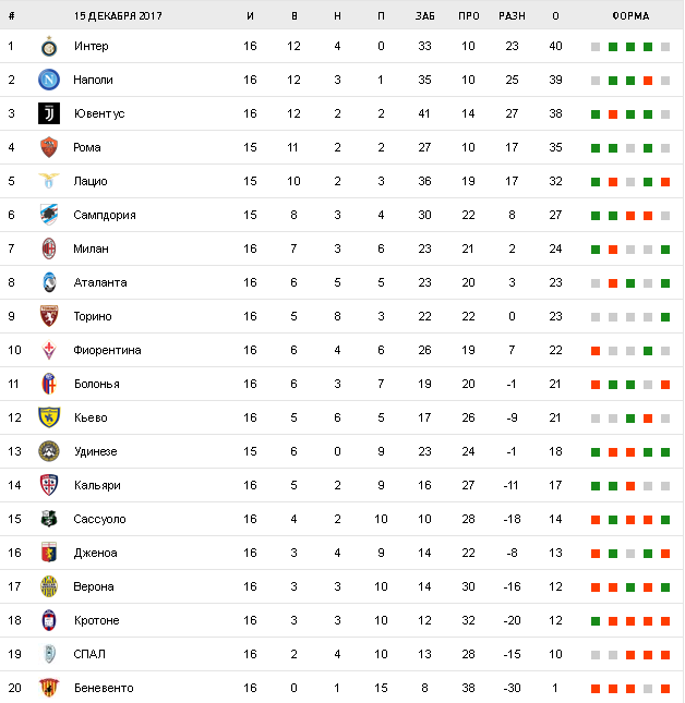 Суббота,16 декабря, 16:00. Милан, Стадио Джузеппе Меацца. Арбитр – Маурицио Мариани