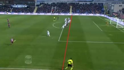 Сначала опытнейший Тальвенто не назначил спорный пенальти в ворота хозяев, затем, проконсультировавшись с ВАР, указал на "точку" у противоположных ворот, что привело к первому голу в матче. В компенсированное время первого тайма "красный свет" увидел защитник сардинийцев Писакане за опасную игру против Риччи, однако виновник явно сделал это неумышленно, поскольку не видел соперника.