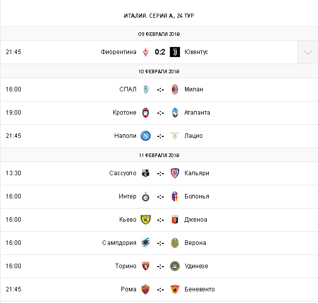 Суббота, 10 февраля, 19:00. Кротоне, Стадио Эцио Шида. Арбитр – Давиде Масса