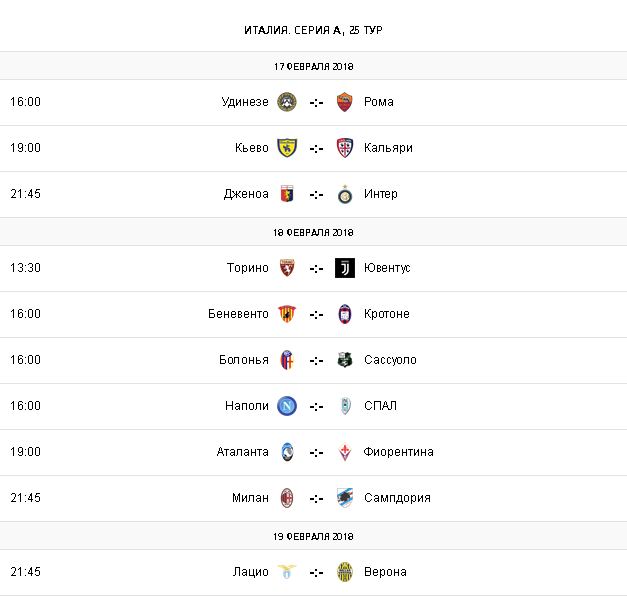 Воскресенье, 18 февраля, 21:45. Милан, Сан-Сиро. Арбитр – Даниэле Довери
