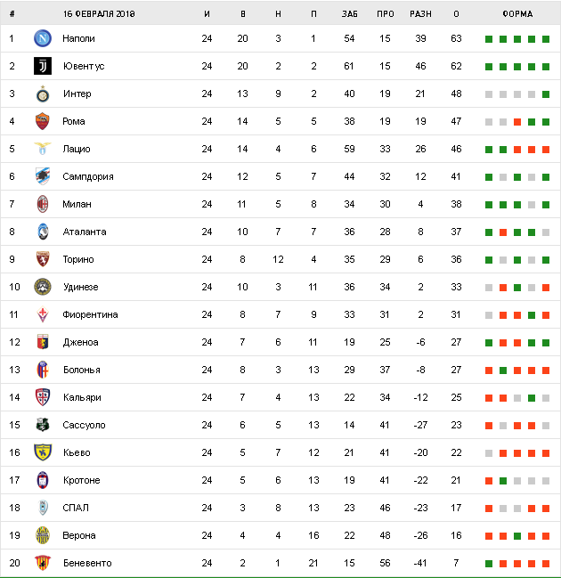 Воскресенье, 18 февраля, 16:00. Неаполь, Стадио Сан-Паоло. Арбитр – Клаудио Джавилуччи