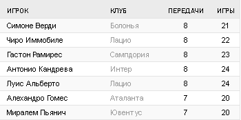Турнирная таблица