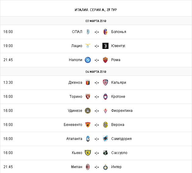 Судя по всему, небесам надоело из тура в тур наблюдать за тем, как Ювентус и Наполи играют в чехарду на вершине турнирной таблицы. Решение прервать эти игрища было оформлено радикально: на Альянц Стэдиум в Турине (да и на весь город, конечно) вывалили столько снега, что проведение матча Ювентус – Аталанта стало просто невозможным. Естественно, неаполитанцы воспользовались ситуацией и увеличили (временно?) свое превосходство до четырех очков. Тем временем Милан, обыграв Рому на выезде, еще ближе подобрался к зоне Лиги чемпионов, а Интер… Впрочем, об Интере разговор особый.