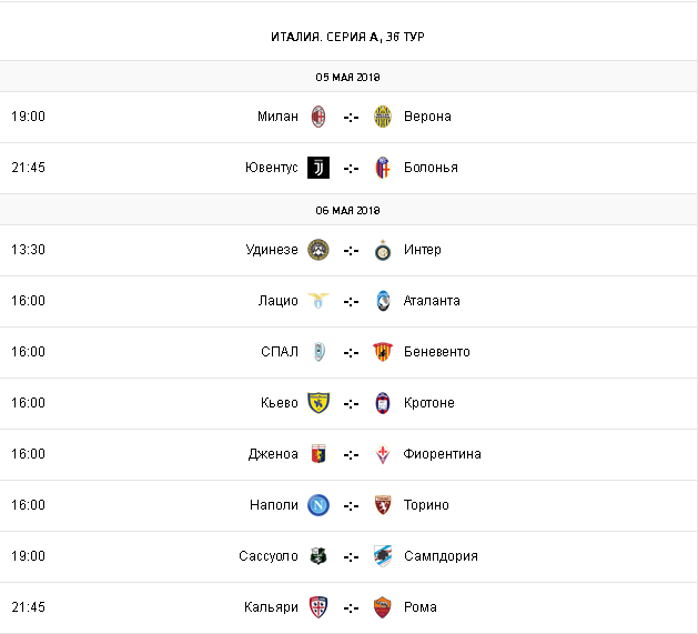 Суббота, 5 мая, 19:00. Милан, Сан-Сиро. Арбитр – Фабрицио Пасква