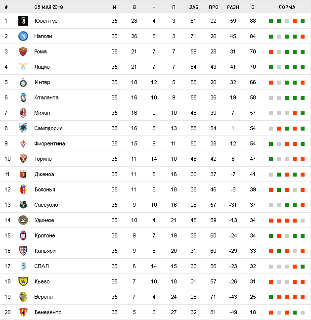 А вот Ювентус будет мотивирован по полной программе. Две победы в оставшихся трех турах гарантируют ему седьмой подряд чемпионский титул (если Наполи сделает такой же подарок, как и в прошлом туре, то в воскресенье Юве при условии своей победы будет коронован в седьмой раз подряд), и вряд ли после впечатляющего (хоть и неоднозначного камбэка против Интера) "бьянконери" решат закрутить очередной виток чемпионской интриги.