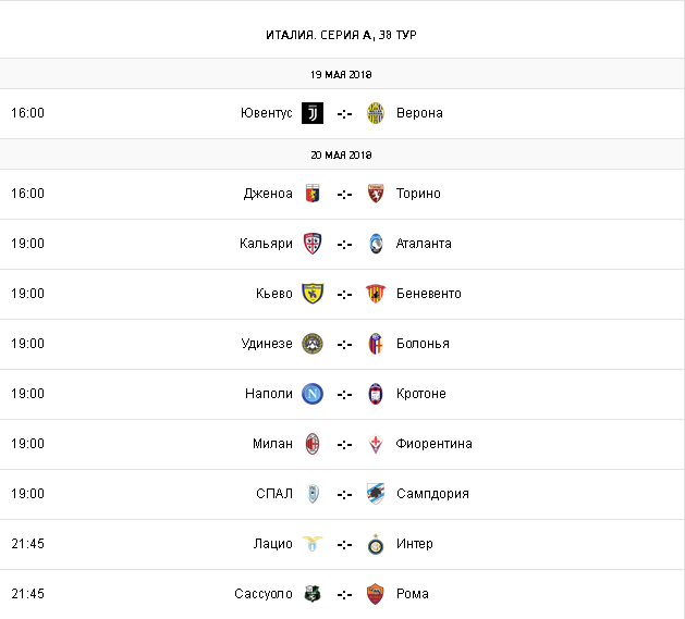В сложившейся ситуации судьба четвертой путевки в Лигу чемпионов находится в руках Лацио и Интера, которые сойдутся на Стадио Олимпико. Победа гостей позволит им занять четвертое место, при любом другом результате в групповой турнир ЛЧ попадет команда Симоне Индзаги.