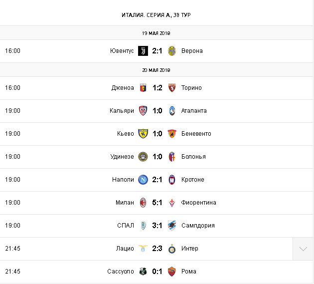 Football.ua подводит итоги тридцать восьмого тура чемпионата Италии.