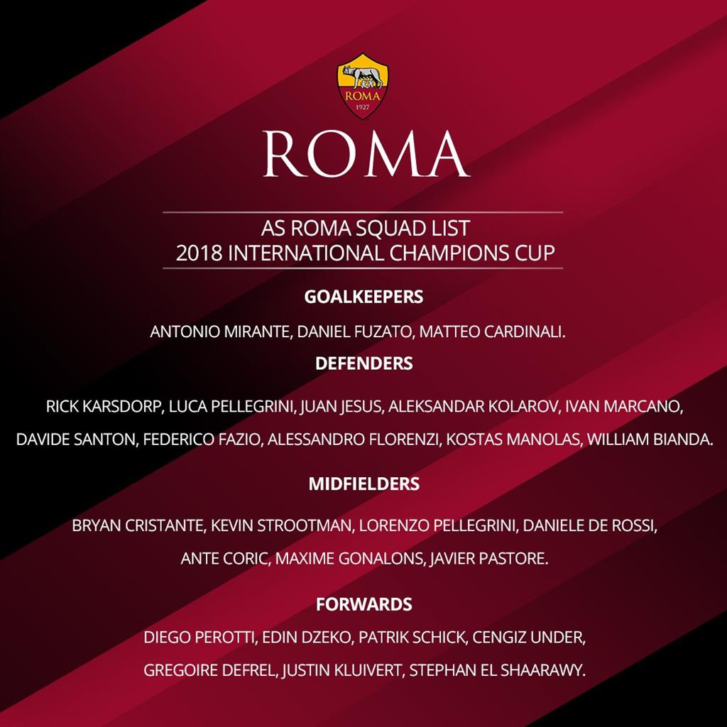 В заявку Ромы на Международный кубок чемпионов Эусебио Ди Франческо включил 27 футболистов.