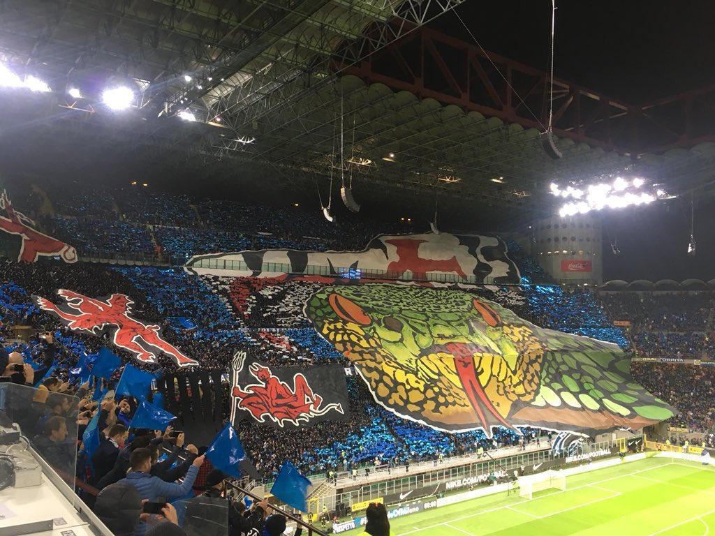 Фанаты Интера сделали огромный баннер, где изобразили символ клуба — змею Серпенте.