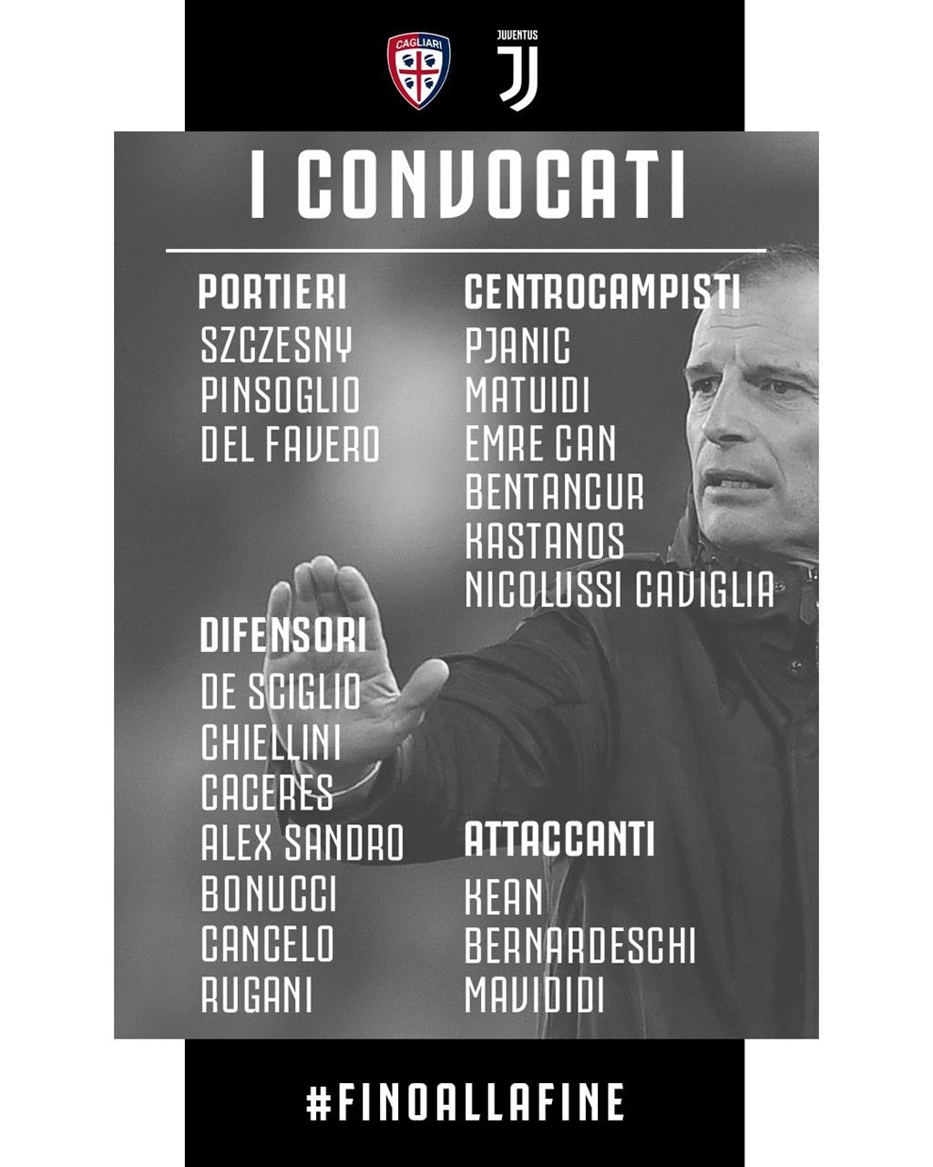 В заявку на матч не были включены Перин, Спинаццола, Манджукич, Дибала, Бардзальи, Куадрадо, Хедира, Дуглас Коста и Криштиану Роналду.