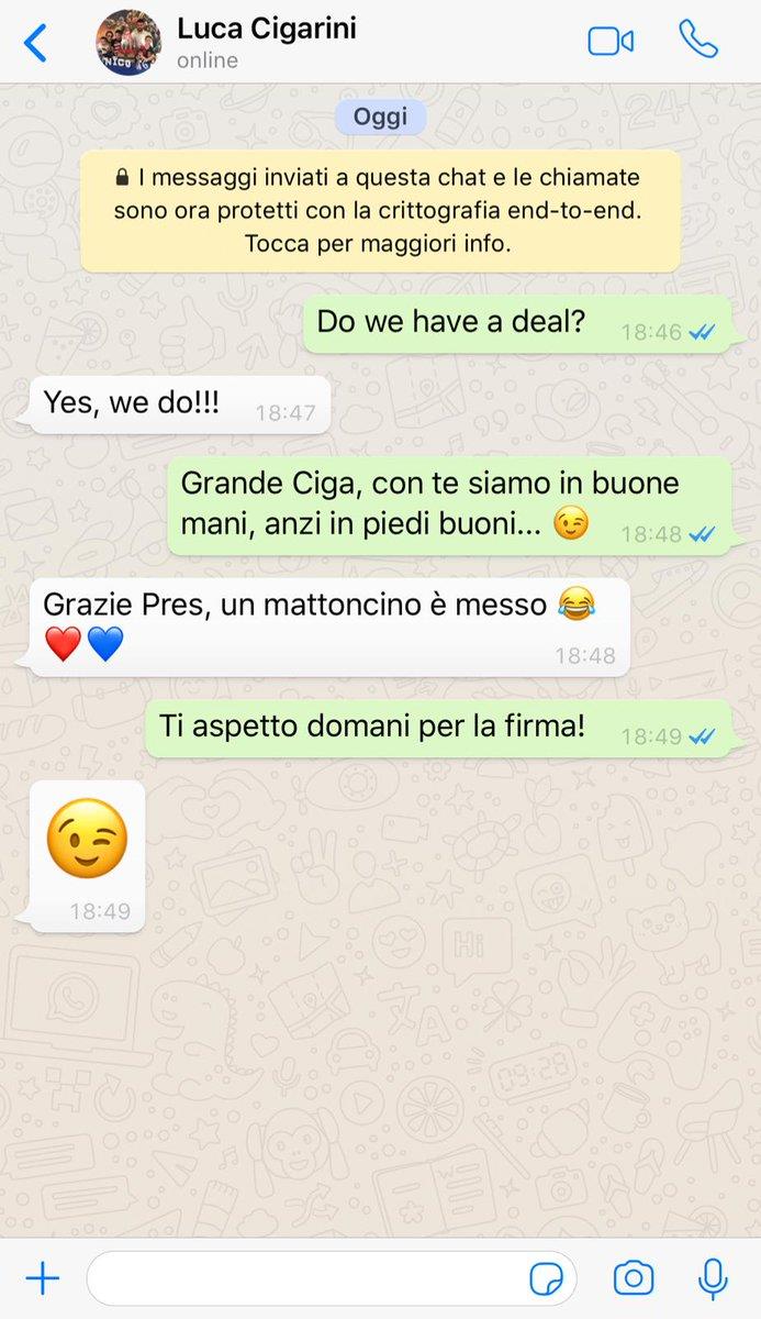Для анонса предстоящего подписания договора Джулини выложил скриншот из переписки с Лукой в WhatsApp: