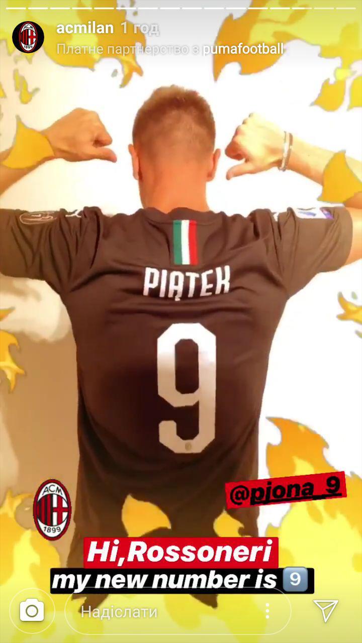 Из стана "россонери" пришла новость, что польский нападающий Кшиштоф Пьонтек обзавелся новым номером, что было сообщено в официальном Instagram-аккаунте Милана.