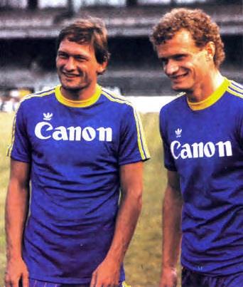 Пазл сложился аккурат в 1984-м, когда в Вероне появились настоящие звезды. Два подписания, аккурат на "легионерские" позиции. Первый – Ганс-Петер Бригель, лидер Кайзерслаутерна и основной игрок сборной Германии, чемпион Европы 1980 года. Скоростной и физически развитый (до 17 лет он занимался легкой атлетикой) краек, умеющий играть по всему левому флангу, который гармонично вписался в построения Баньоли. Второй – Пребен Элкьяер-Ларсен, один из величайших датских футболистов всех времен. Нападающий, сочетавший в себе физическую мощь, подвижность и технику – а также, увы, непростой характер и любовь к развлечениям, из-за чего на целых шесть лет застрял в бельгийском Локерене. Летом 1984-го Элкьяер-Ларсен блеснул на Чемпионате Европы, где Дания, оставив более чем приятное впечатление, оступилась в полуфинале. Верона приобрела скандального датчанина за 2,5 миллиарда лир, и тот сразу стал любимцем местной тифозерии, заслужив прозвища "мэр" и "бешеная лошадь".