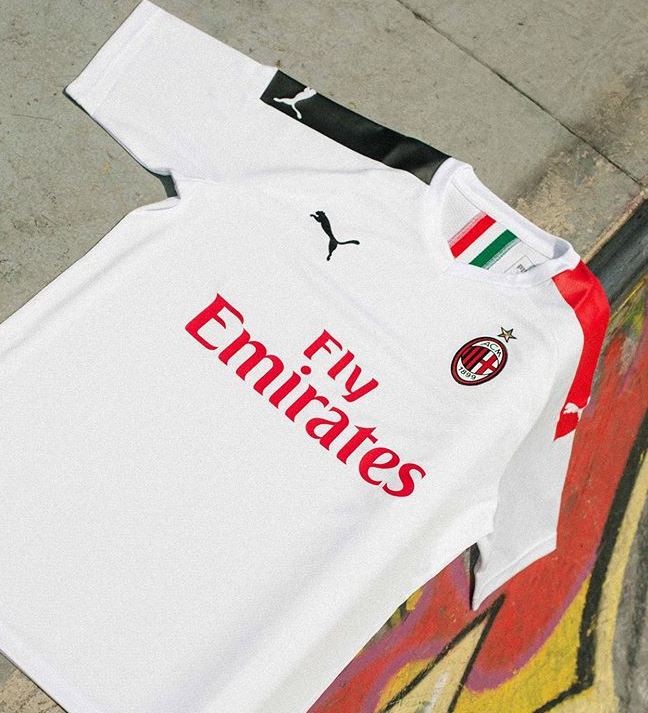 Вслед за домашним и третьим комплектами, "россонери" представил выездной вариант. Джерси выполнена в традиционном для гостевого комплекта белом цвете.