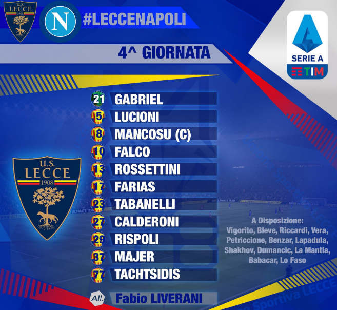Полузащитник Евгений Шахов не попал в стартовый состав Лечче на матч с Наполи в 4-м туре Серии А.