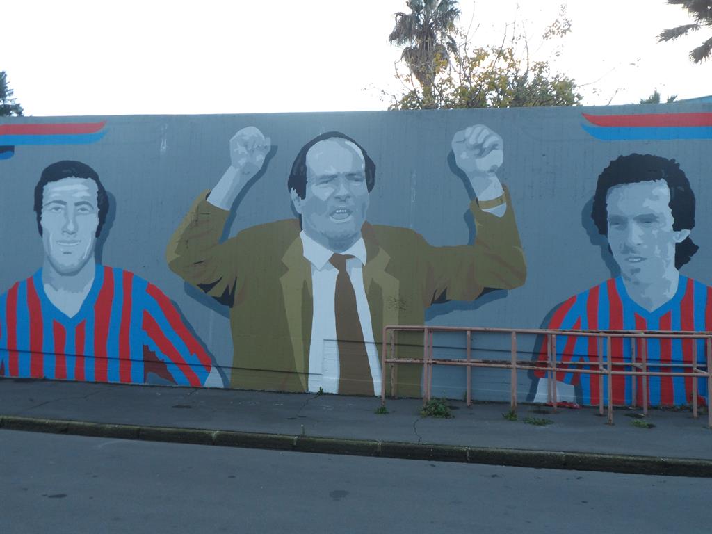 На подходе к ней бросается в глаза разукрашенная стена. Масштабная работа, сделанная по заказу городского правительства. Художниками изображены 50 наиболее значимых личностей в истории клуба (список определялся интернет-голосованием болельщиков). Общая длина рисунка – целых 210 метров. Смотрится очень душевно, чем-то напоминая окрестности стадионов бывшей Югославии. Чего-то такого порой не хватает гламурным топ-клубам.