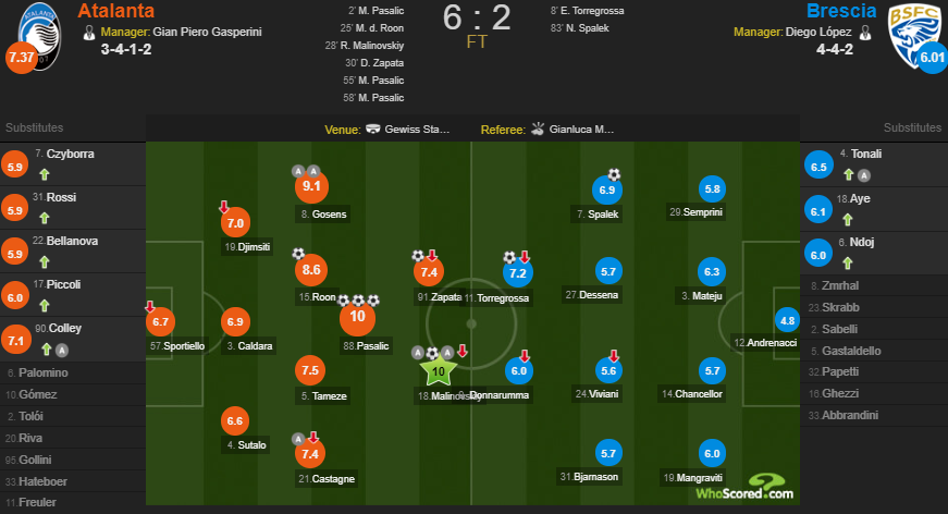 Руслан Малиновский получил 10 баллов от специализированного портала Whoscored за игру в матче 33-го тура Серии А против Брешии.