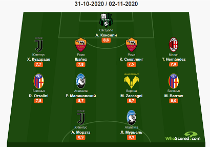 К слову, лучшим игроком недели признан Мусса Барроу из Болоньи с оценкой 9,0.