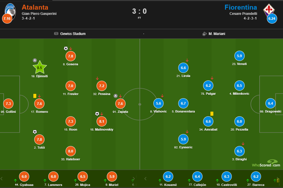 В рамках 11-го тура итальянской Серии А Аталанта добыла уверенную победу в матче против Фиорентины (3:0).