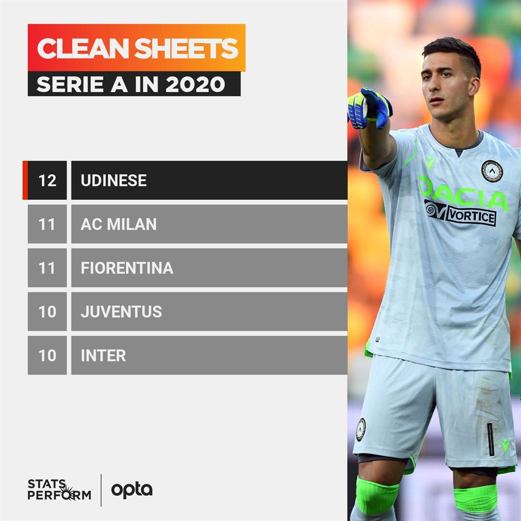 Удинезе стал лучшей командой уходящего 2020 года в итальянской Серии А по количеству проведенных "сухих" поединков.