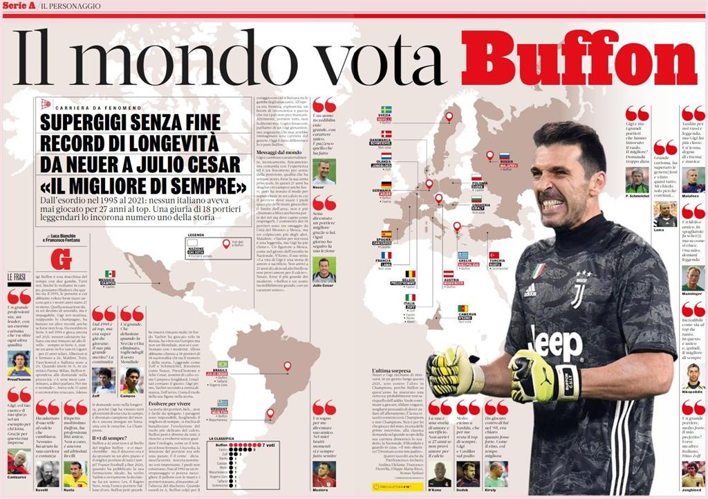 Голкипер туринского Ювентуса Джанлуиджи Буффон был признан экспертным комитетом итальянского издания La Gazzetta Dello Sport лучшим голкиперов в истории футбола на момент окончания 2020 года.