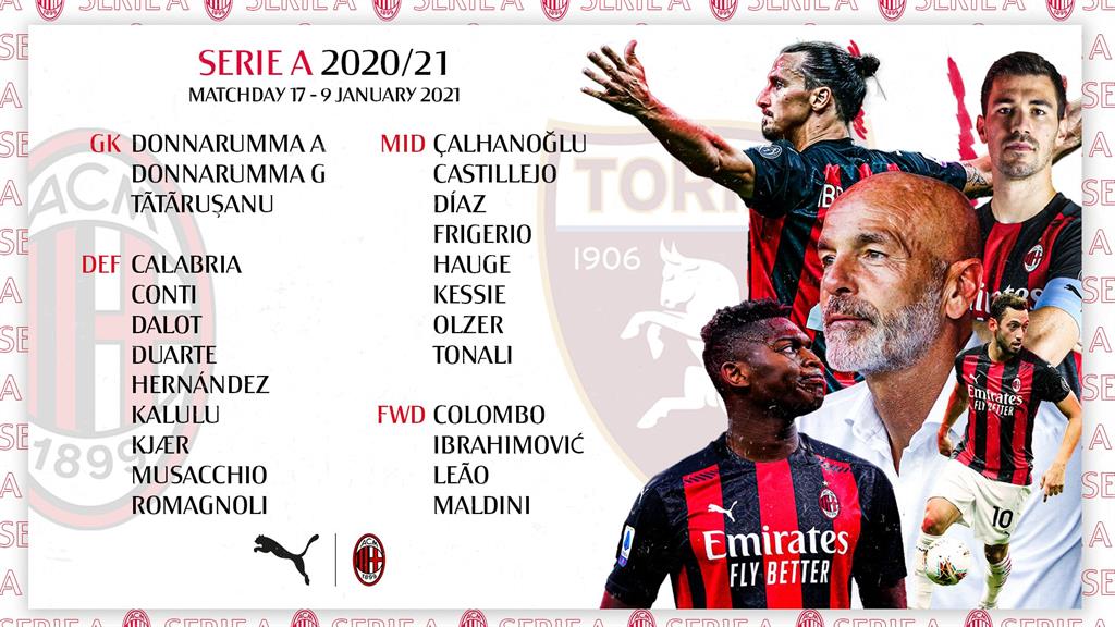 Заявка Милана на матч 17-го тура чемпионата Италии против Торино порадовала поклонников "россонери" и огорчила их оппонентов.