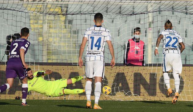 Игра постепенно начала раскрываться перед перерывом, когда волевых усилий гостей начало хватать для обозначения преимущества на чужой половине. Фиорентина прижалась к собственным владениям, и в случайной ситуации получила пенальти в собственные ворота за фол со стороны голкипера Терраччано против Санчеса, хотя Алексис успел до этого отправить мяч в правый каркас чужих ворот ударом с добивания. Страж ворот по инерции врезался в соперника, но для арбитра Давиде Масса этого было достаточно для назначения одиннадцатиметрового. Видаль пробил точно по центру ворот.