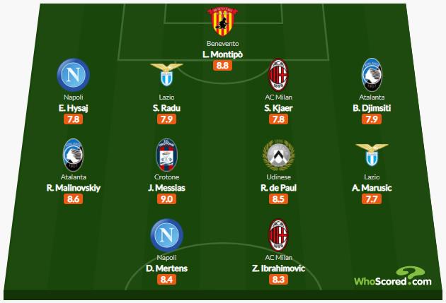 Малиновский был оценен в 8,6 балла и лучше него в команде недели Серии А только двое — это вратарь Беневенто Лоренцо Монтипо (8,8) и полузащитник Кротоне Джуниор Уолтер Мессиас (9,0).