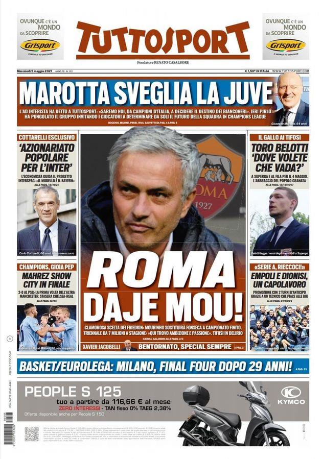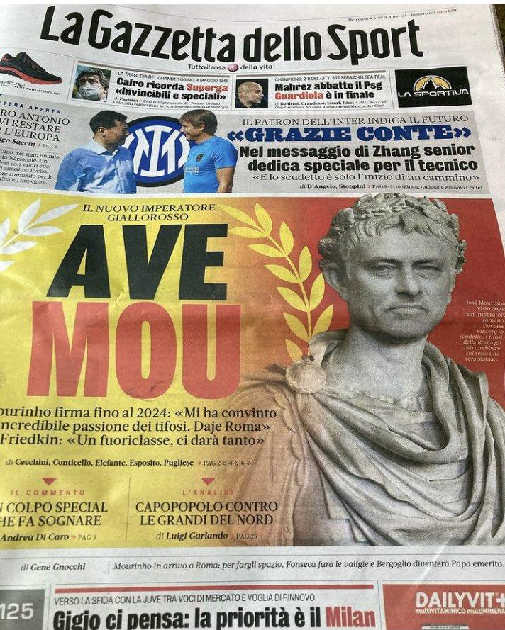 "Roma, daje Mou!" — привычный атрибут этого подписания нашел свою форму и на обложке данного издания. Тут также отмечают небывалый интерес со стороны сообщества футбольных фанатов по всему миру, и отмечают, что это подписание было сенсационным для всей Италии. Шутка ли, но за час до официального объявления о приходе Моуриньо, на странице ресурса была размещена новость о грядущих переговорах римского клуба с Маурицио Сарри. Если руководству Ромы удалось скрыть такую новость даже от местной прессы, то тут уж действительно — "бомба".