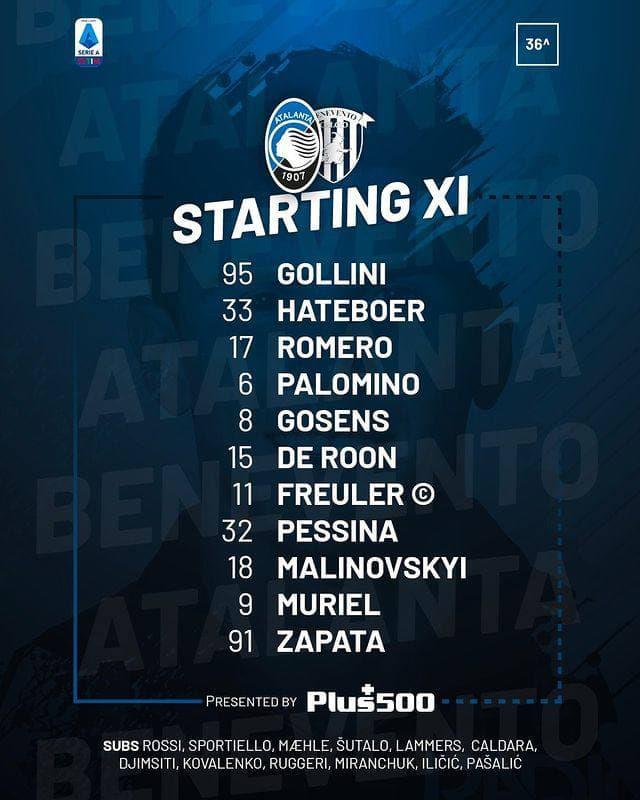 Аталанта: Голлини — Хатебур, Ромеро, Паломино — Госенс, Малиновский — Фройлер, де Рон, Пессина — Сапата, Муриэль