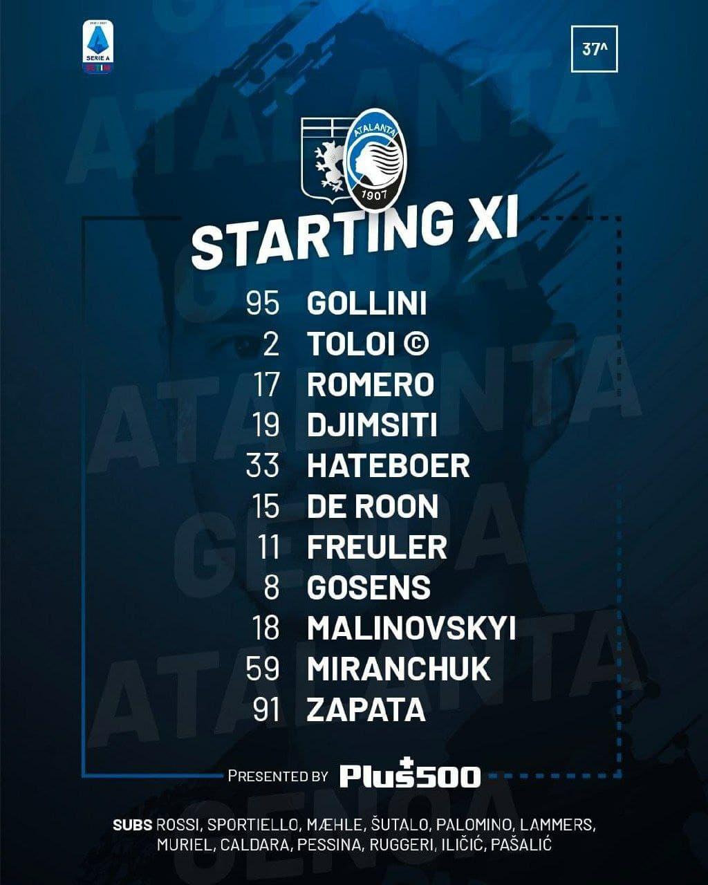 Аталанта: Голлини — Толой, Ромеро, Джимсити, Хатебур — де Рон, Фройлер, Госенс, Малиновский, Миранчук — Сапата