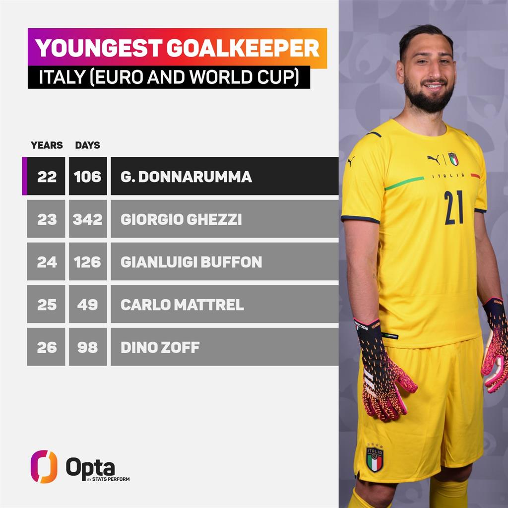 Как сообщает Opta, итальянский талант стал самым молодым вратарем Италии в истории крупных турниров (ЧМ и Евро). Это достижение покорилось ему в возрасте 22 лет и 106 дней.