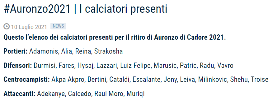 Слухи касательно возможного предстоящего ухода 28-летнего испанца в другую команду усилились после того, как сегодня, 10 июля, Лацио опубликовал список своих футболистов, пребывающих на предсезонном сборе.