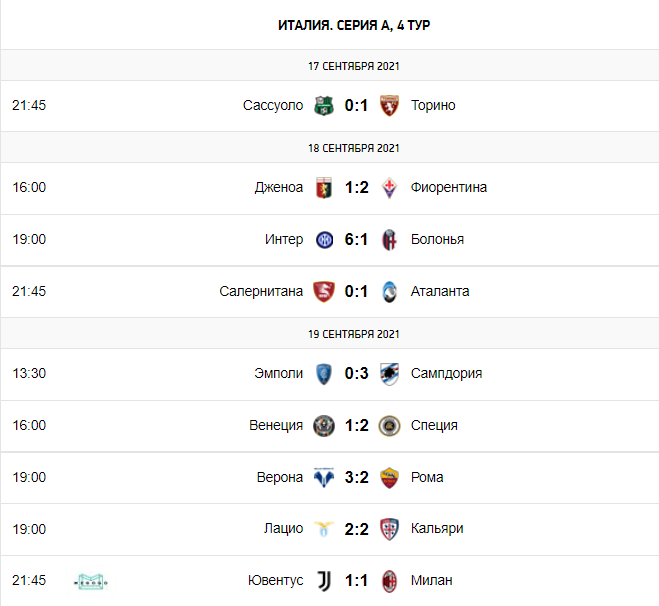 Четвертый тур итальянской Серии А подошел к своему завершению, подарив нам множество интересных противостояний.