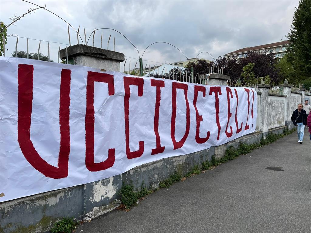 Один из баннеров, которые фаны вывесили на стене возле арены, гласит "убейте их" (их — игроков Ювентуса).