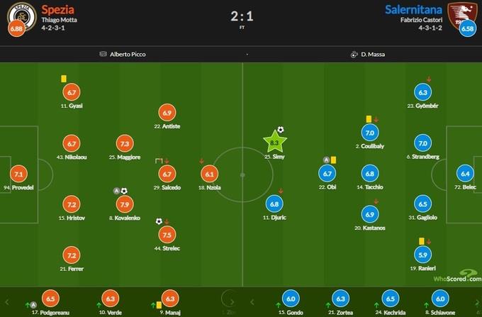 В поединке восьмого тура итальянской Серии А Специя на своем одержала минимальную победу над Салернитаной (2:1).