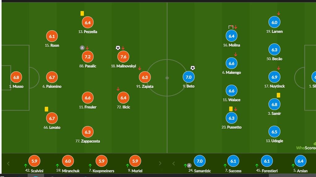 В этом противостоянии полный матч отыграл украинский хавбек "бергамасков" Руслан Малиновский, который сумел отметиться забитым мячом во втором тайме.