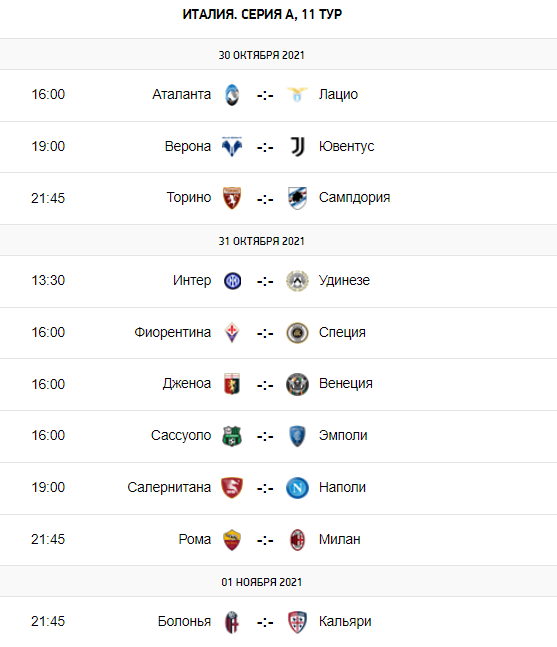 Расписание следующих матчей